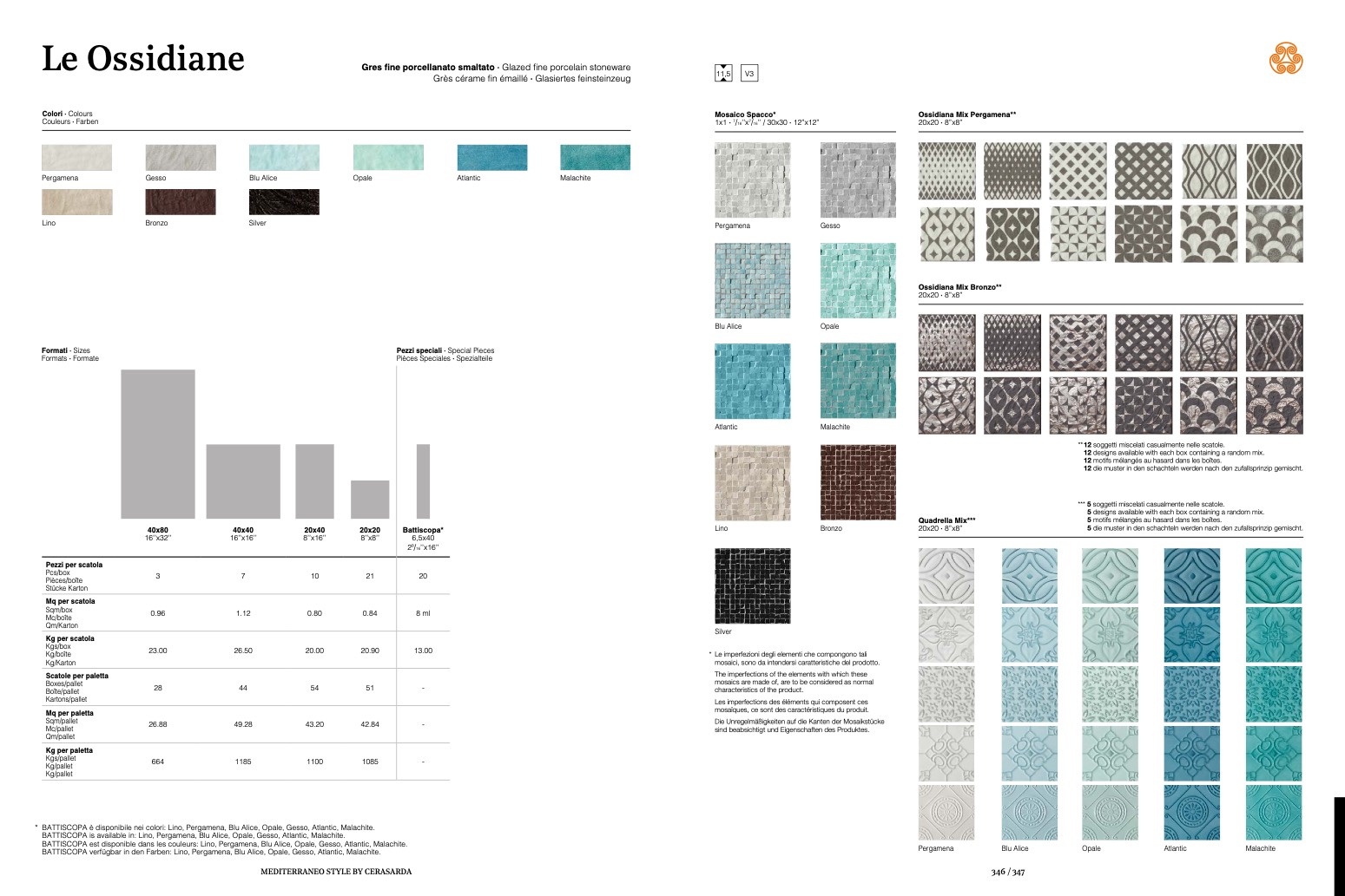 BATTISCOPA verfügbar in den Farben: Lino, Pergamena, Blu Alice, Opale, Gesso, Atlantic, Malachite.
