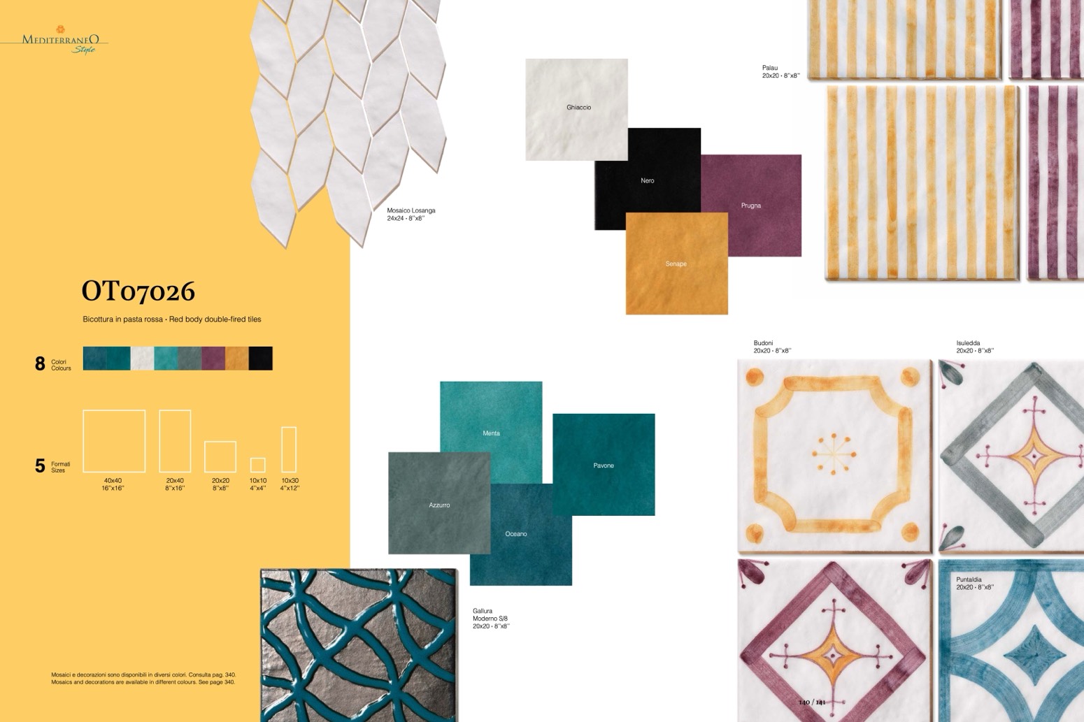Mosaici e decorazioni sono disponibili in diversi colori. Consulta pag. 340.