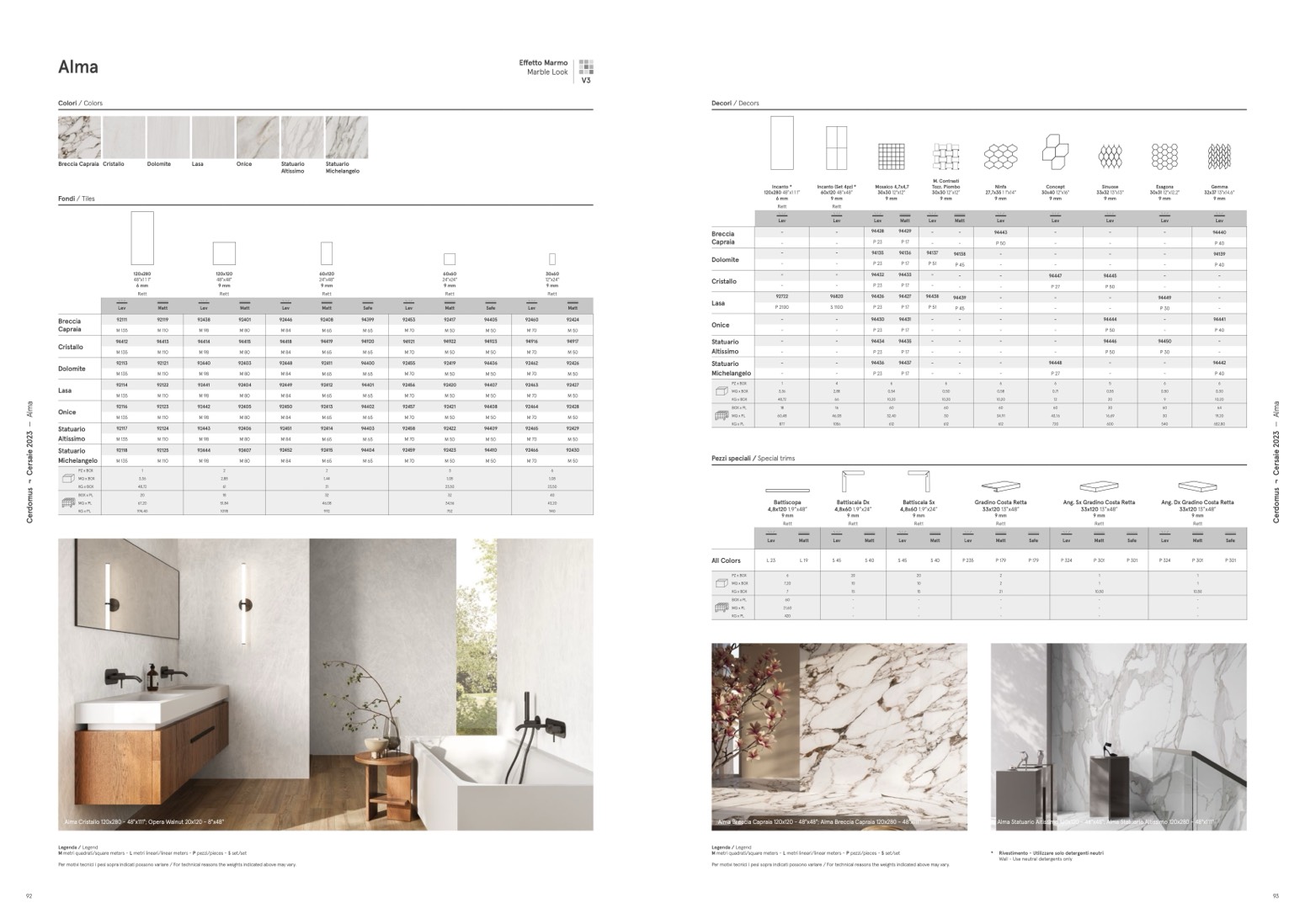 Alma Breccia Capraia 120x120 - 48"x48"; Alma Breccia Capraia 120x280 - 48"x111"