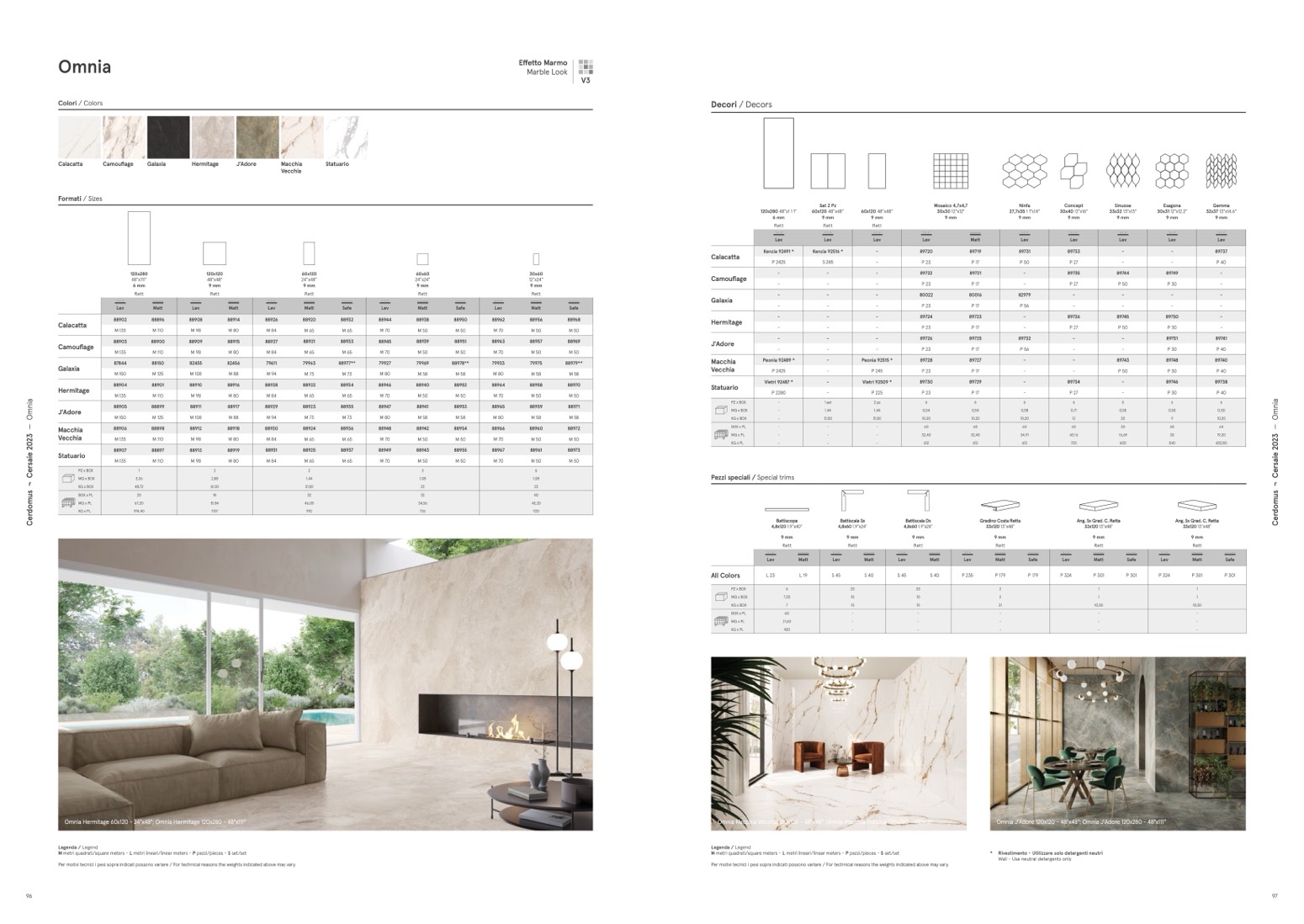 Omnia Hermitage 60x120 - 24"x48"; Omnia Hermitage 120x280 - 48"x111"