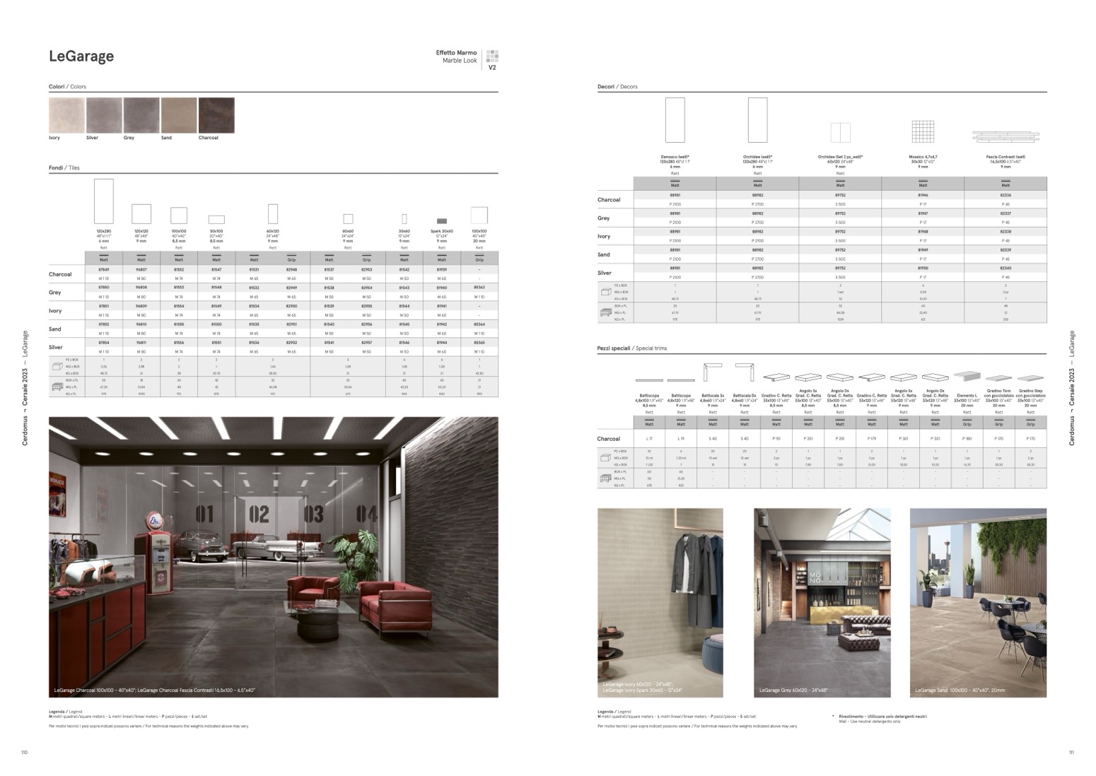 LeGarage Charcoal 100x100 - 40"x40"; LeGarage Charcoal Fascia Contrasti 16,5x100 - 6.5”x40”