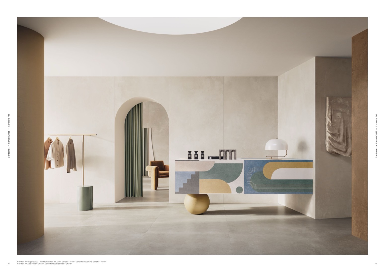Concrete Art Grigio 120x120 - 48"x48"; Concrete Art Avorio 120x280 - 48"x111"; Concrete Art Caramel 120x280 - 48"x111";