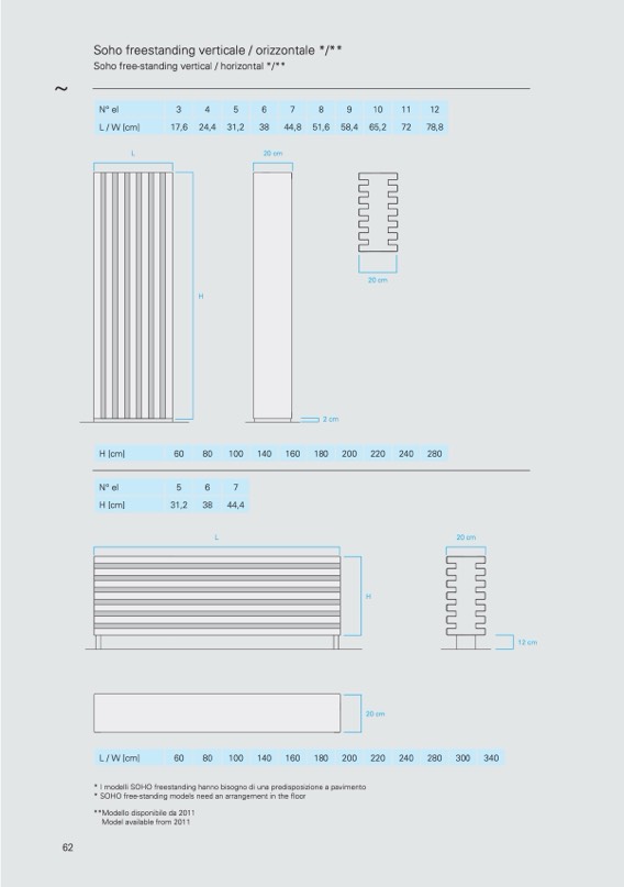 * I modelli SOHO freestanding hanno bisogno di una predisposizione a pavimento