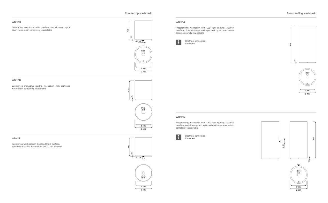 Countertop washbasin in Biobased Solid Surface.