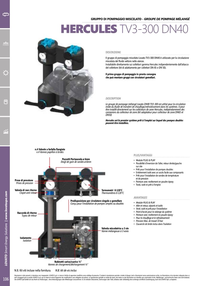 Il gruppo di pompaggio miscelato Lovato TV3-300 D40 è utilizzato per la circolazione