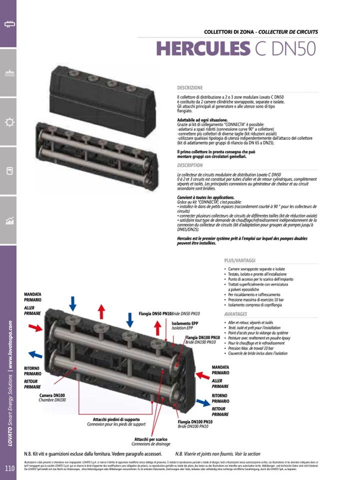 Le collecteur de circuits modulaire de distribution Lovato C DN50