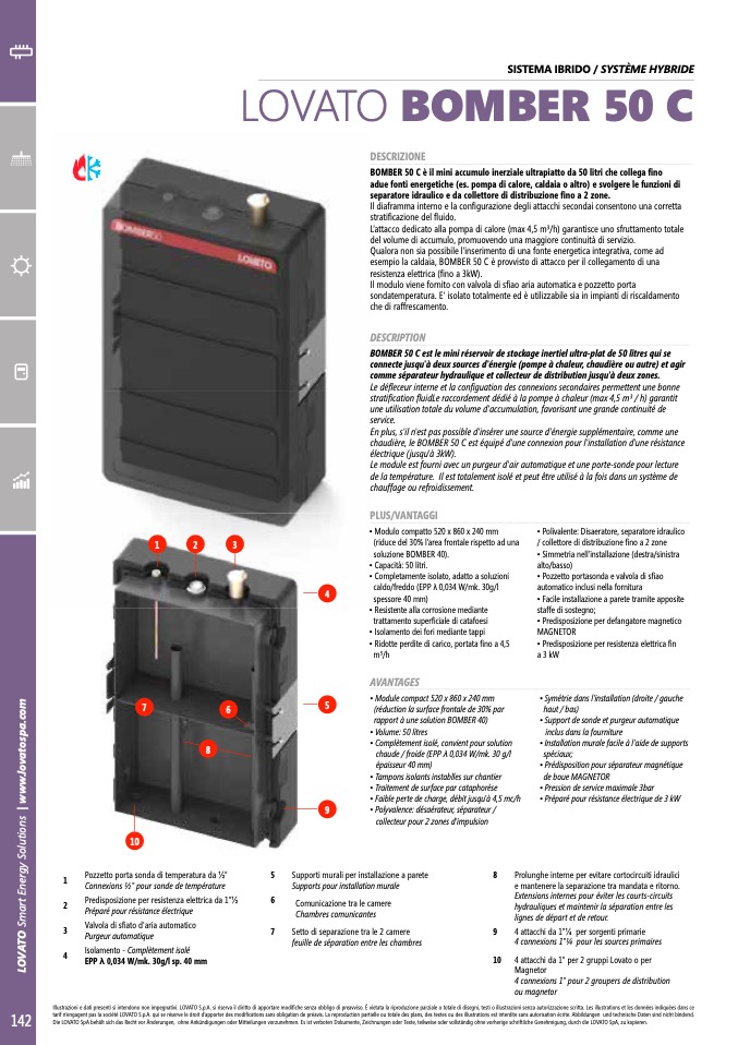 sondatemperatura. E' isolato totalmente ed è utilizzabile sia in impianti di riscaldamento