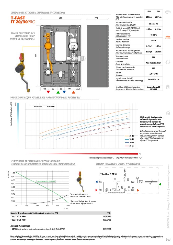 • KIT Ricircolo sanitario, recirculation eau domestique T-FAST IT 20/30 PRO