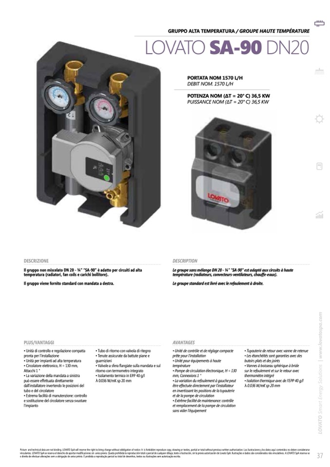 Il gruppo non miscelato DN 20 - 3⁄4” “SA-90” è adatto per circuiti ad alta