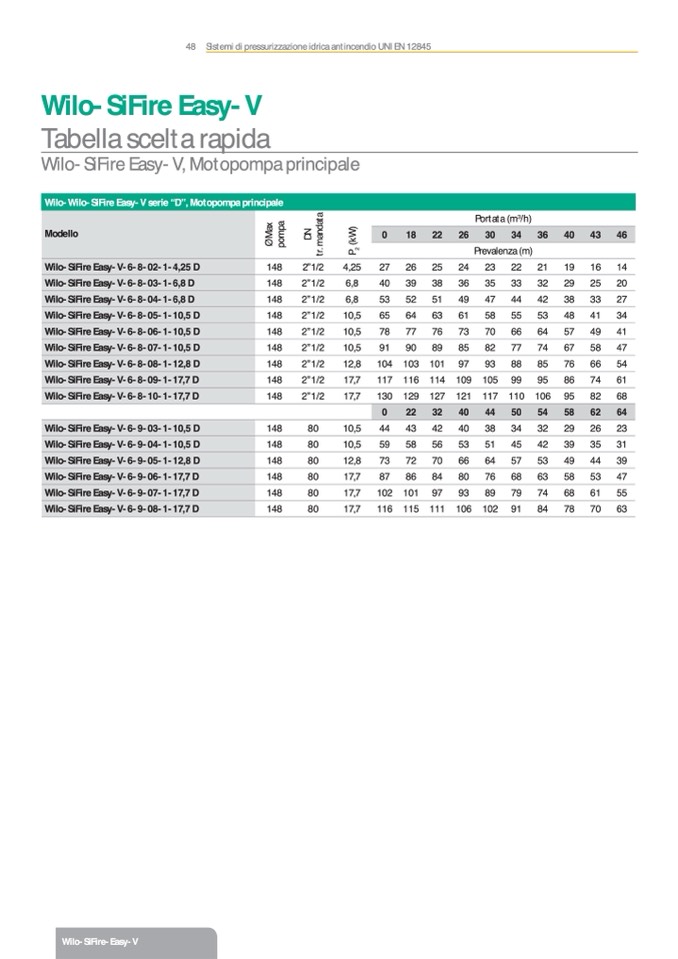 Wilo-Wilo-SiFire Easy-V serie “D”, Motopompa principale