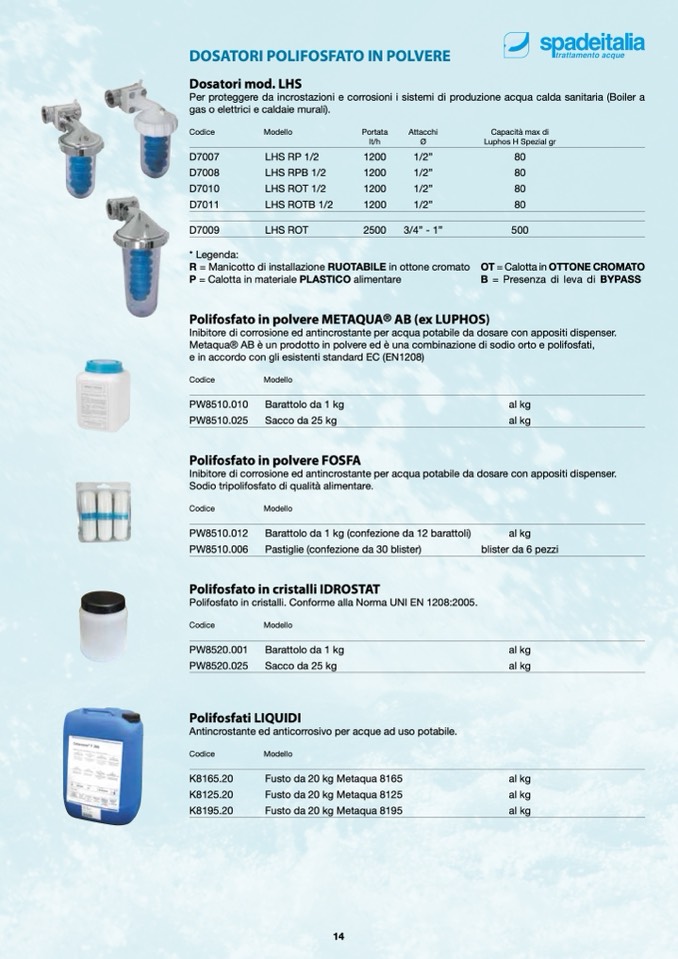 Polifosfato in cristalli. Conforme alla Norma UNI EN 1208:2005.