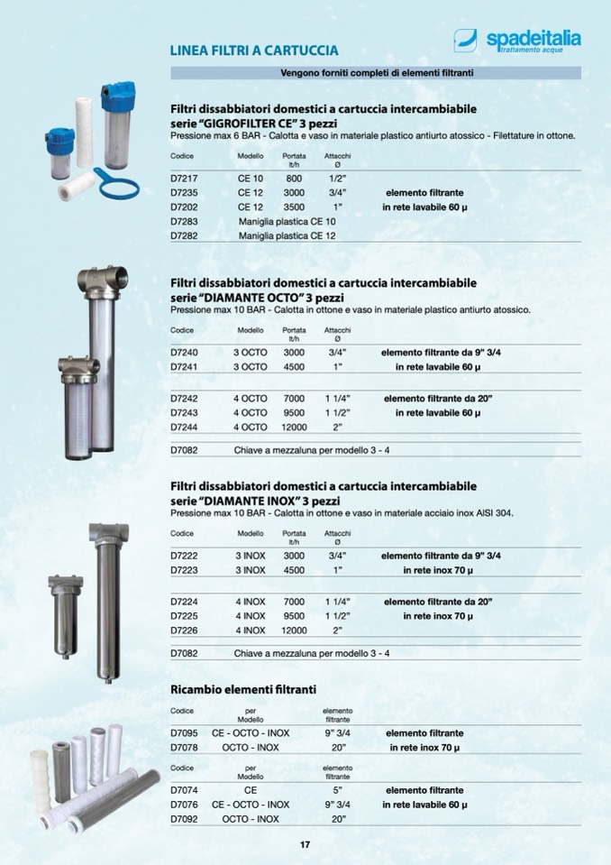Pressione max 6 BAR - Calotta e vaso in materiale plastico antiurto atossico - Filettature in ottone.