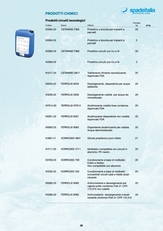 Deossigenante, disperdente per acque