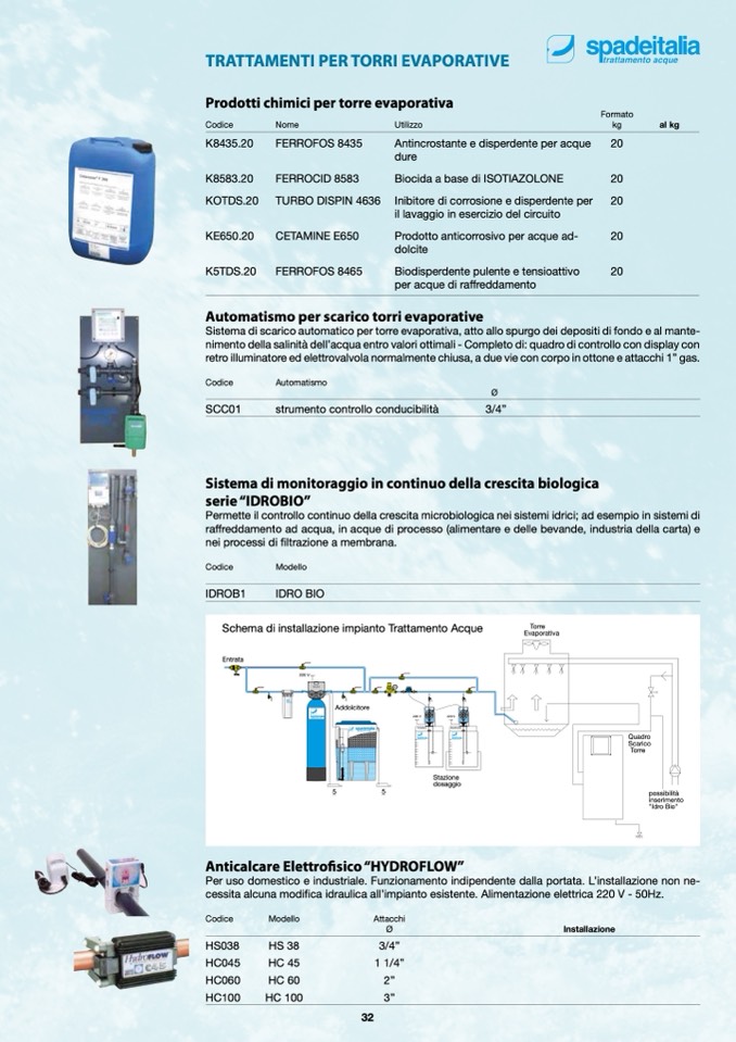 Sistema di scarico automatico per torre evaporativa, atto allo spurgo dei depositi di fondo e al mante-