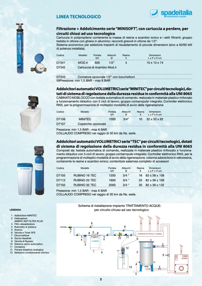 programmazione di molteplici modalità di avvio della rigenerazione; colonna addolcitore in vetroresina,