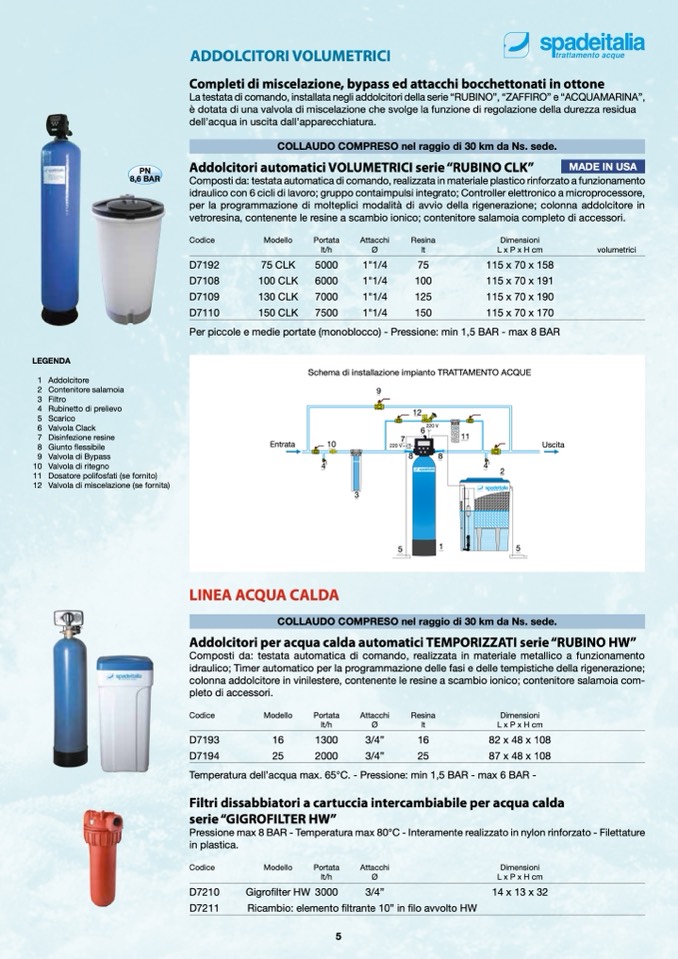 le resine a scambio ionico; contenitore salamoia completo di accessori.
