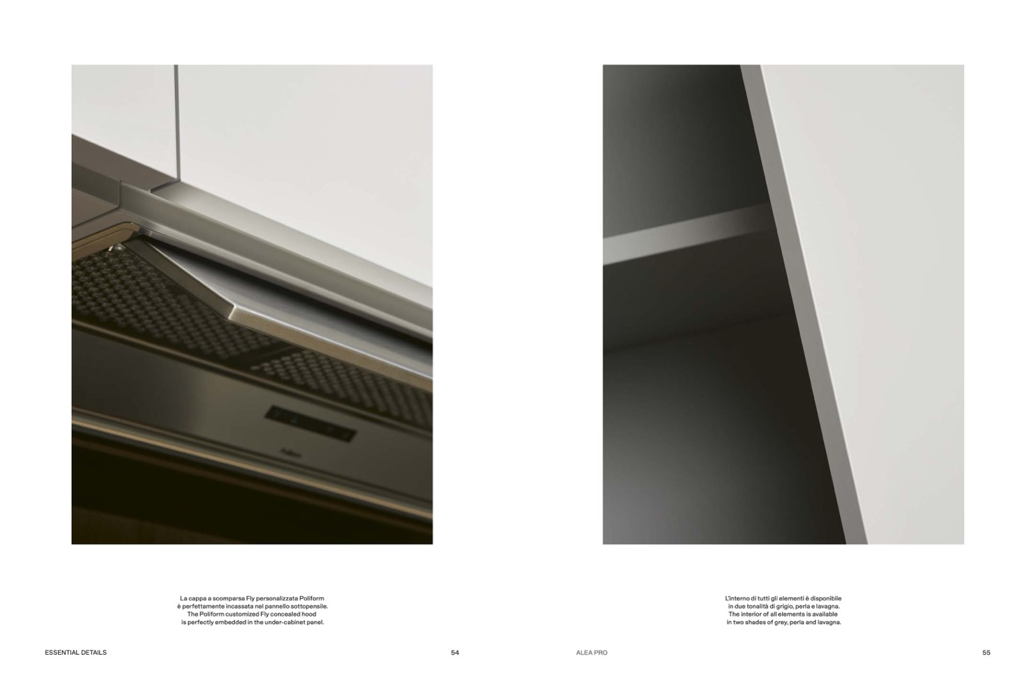 in two shades of grey, perla and lavagna.