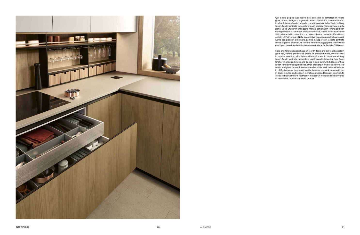 gold oak, handle profile and profile in anodized moka, inner drawer