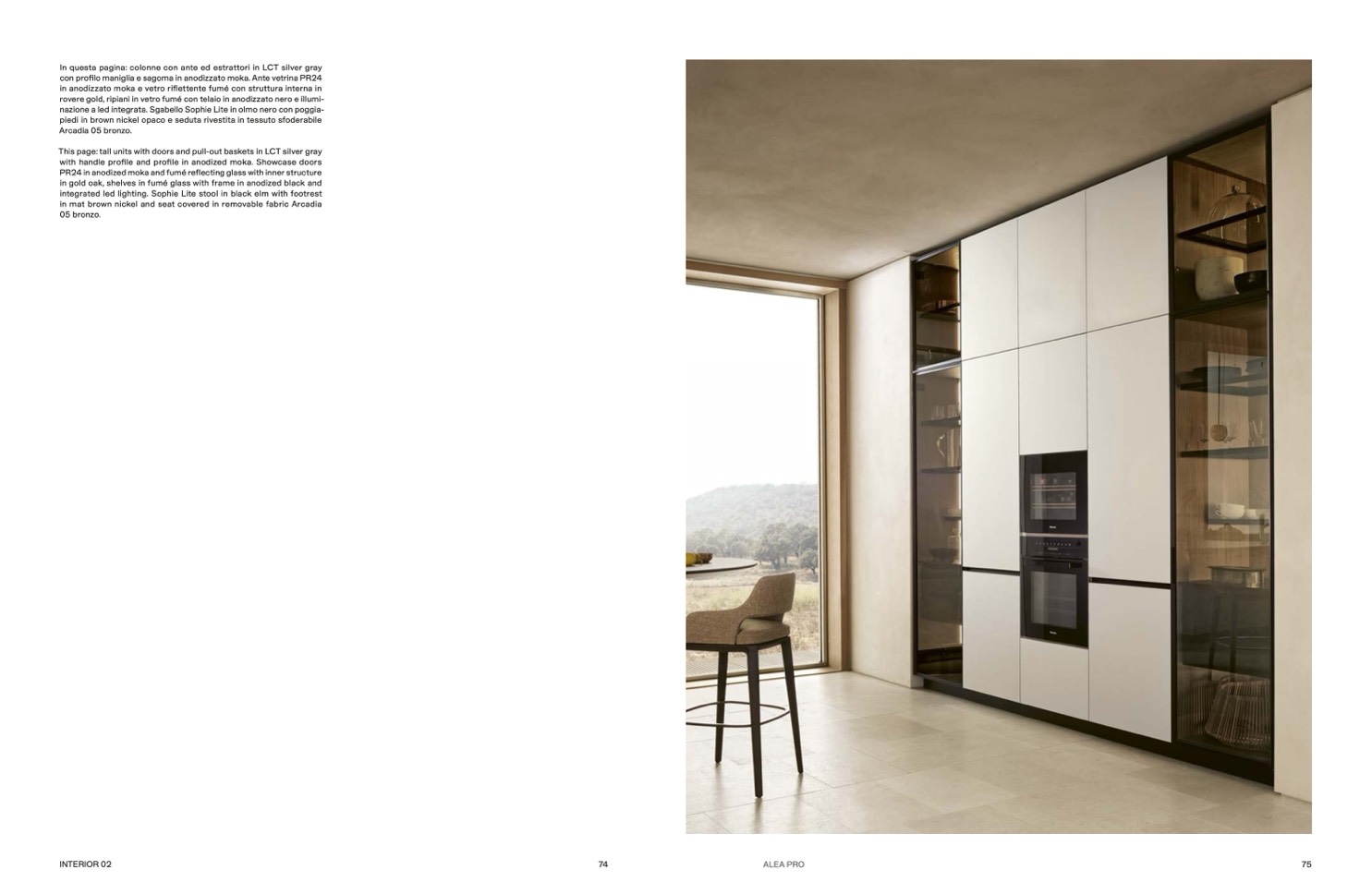 con profilo maniglia e sagoma in anodizzato moka. Ante vetrina PR24