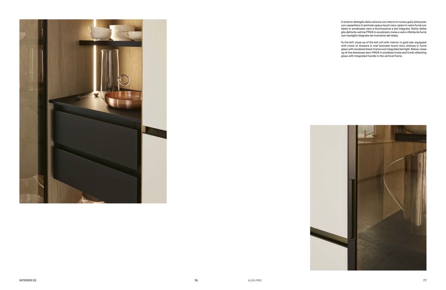 glio dell’anta vetrina PR24 in anodizzato moka e vetro riflettente fumé