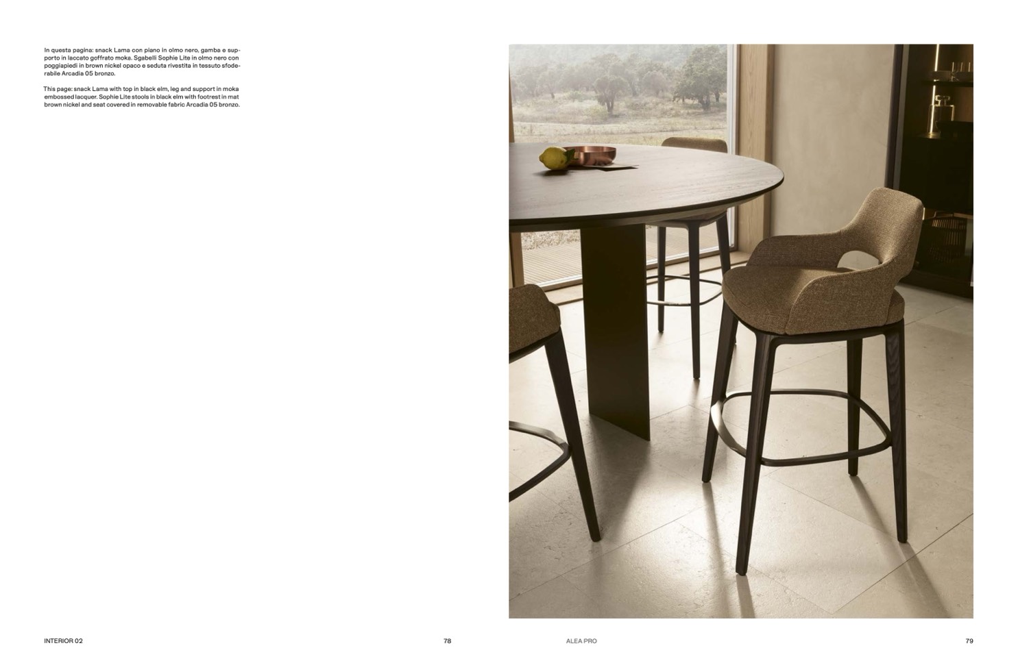 porto in laccato goffrato moka. Sgabelli Sophie Lite in olmo nero con