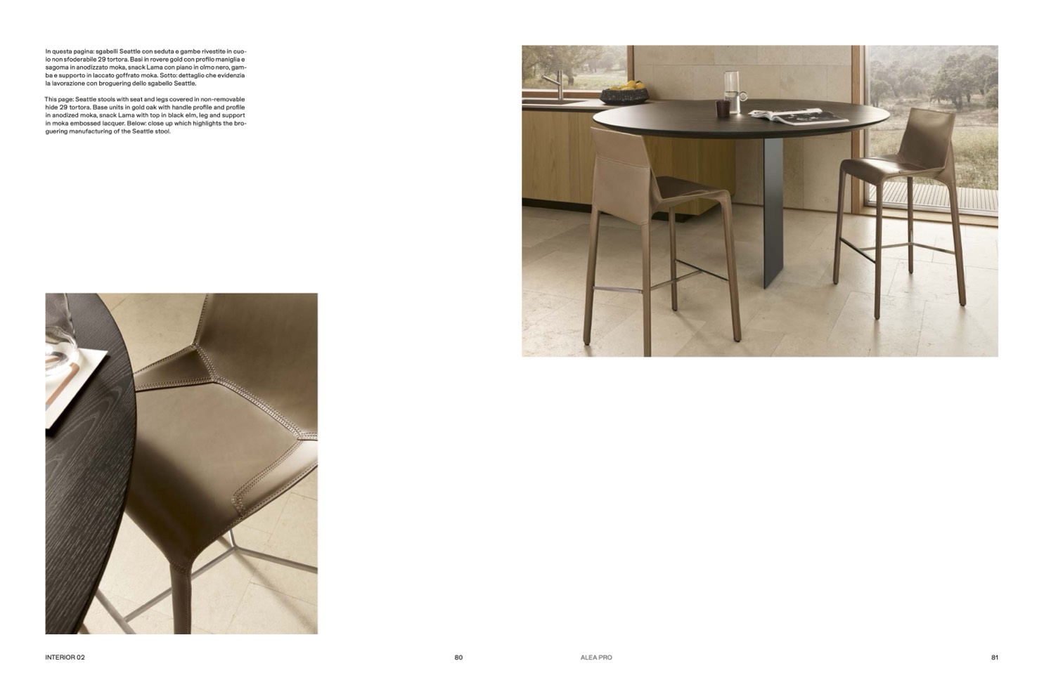 In questa pagina: sgabelli Seattle con seduta e gambe rivestite in cuo-