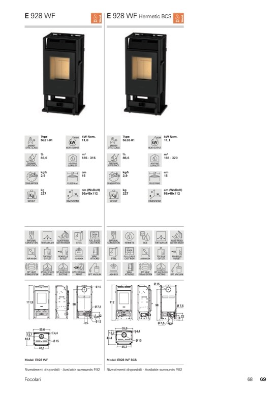 Rivestimenti disponibili - Available surrounds P.92