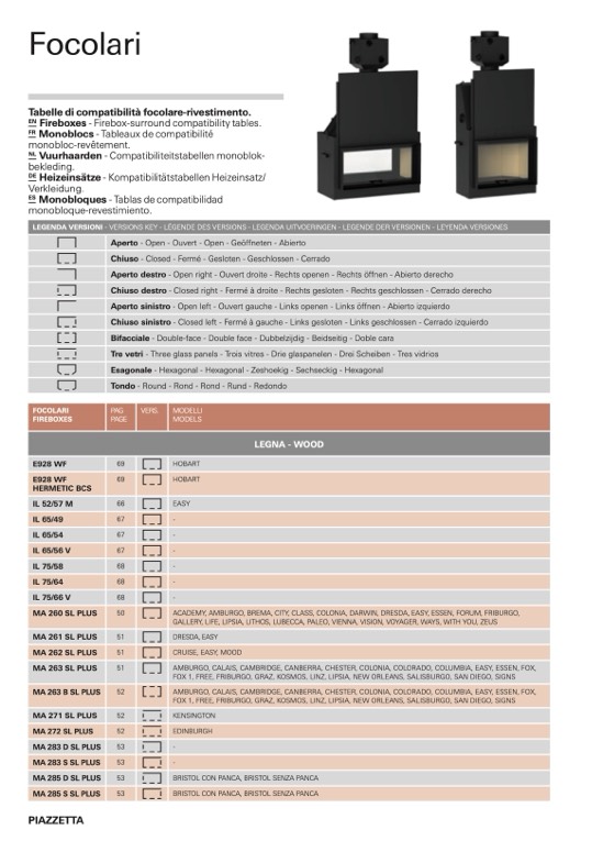 Tabelle di compatibilità focolare-rivestimento.