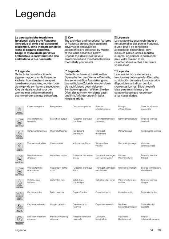 funzionali delle stufe Piazzetta,