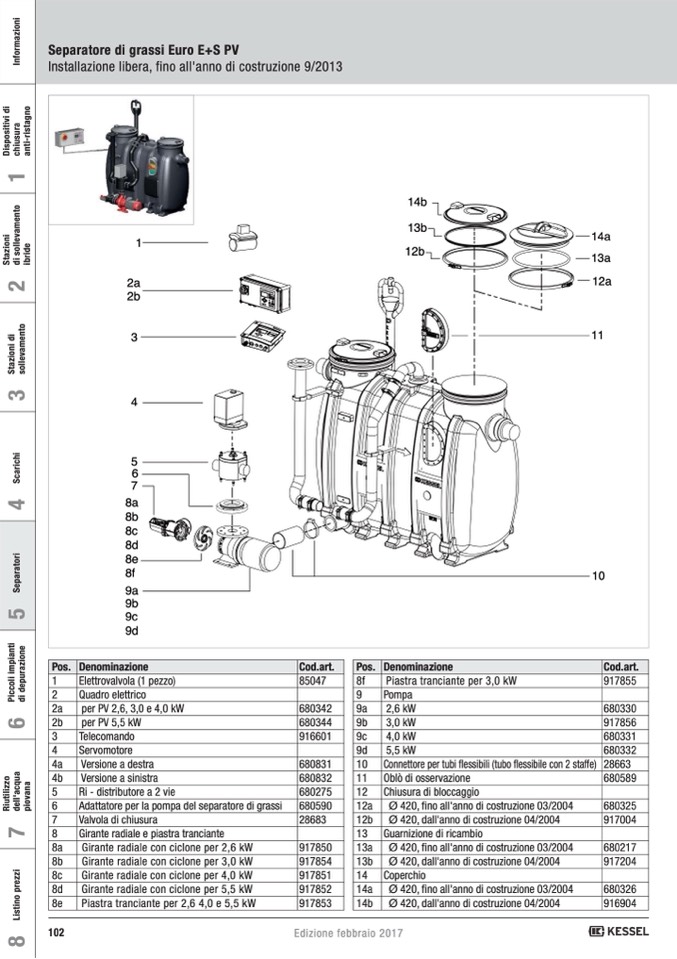 Piastra tranciante per 2,6 4,0 e 5,5 kW