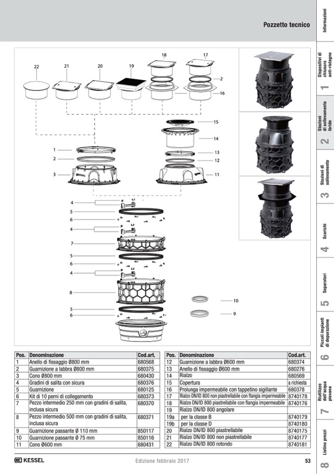 Rialzo DN/ID 800 non piastrellabile con flangia impermeabile