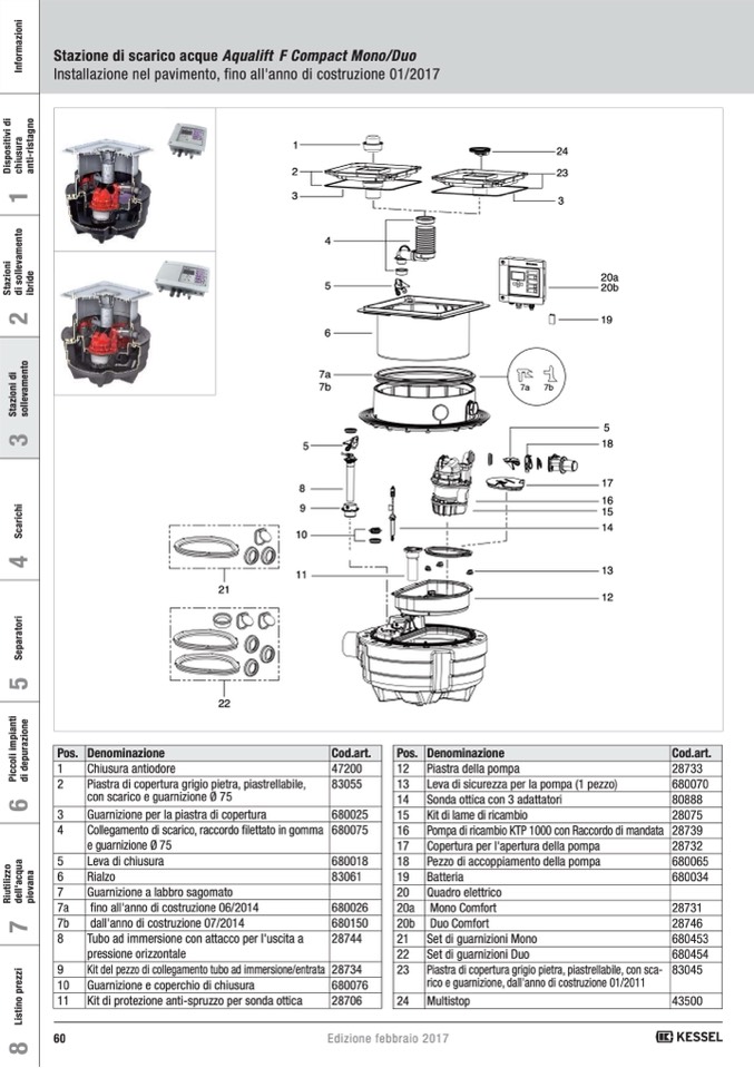 Installazione nel pavimento, fino all'anno di costruzione 01/2017