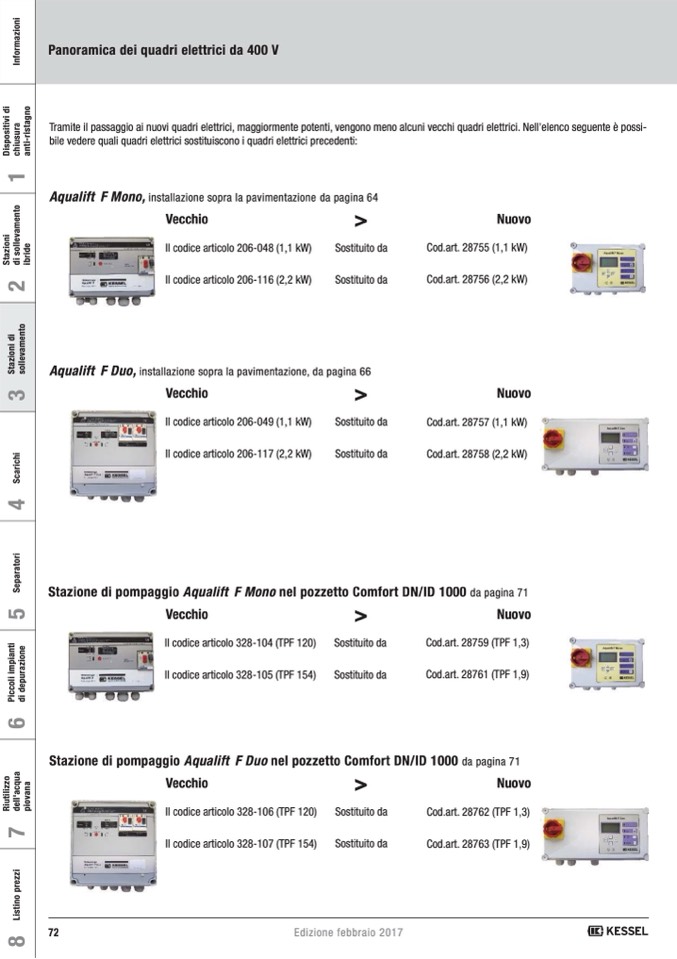 bile vedere quali quadri elettrici sostituiscono i quadri elettrici precedenti: