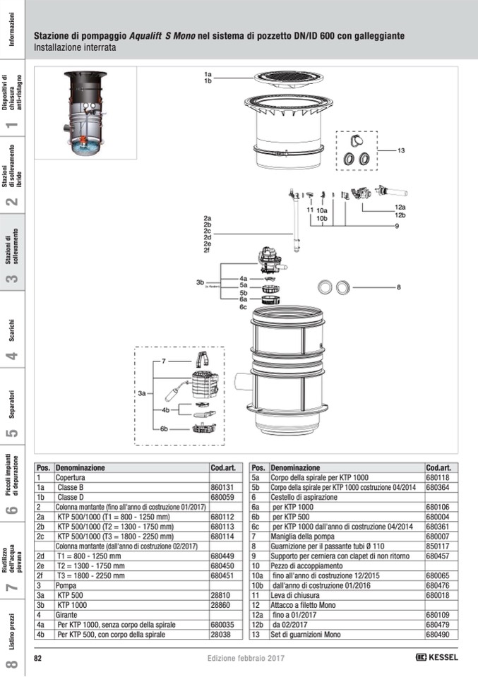 Stazione di pompaggio Aqualift S Mono nel sistema di pozzetto DN/ID 600 con galleggiante