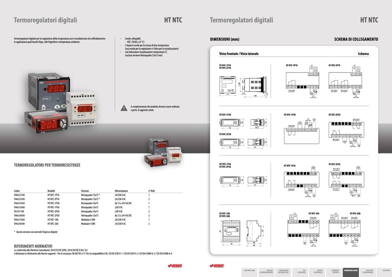 è dichiarata in riferimento alle Norme seguenti: • Per la sicurezza: EN 60730-2-9 • Per la compatibilità E.M.: CEI EN 55014-1 / CEI EN 55014-2 / CEI EN 61000-6-2 / CEI EN 61000-6-4