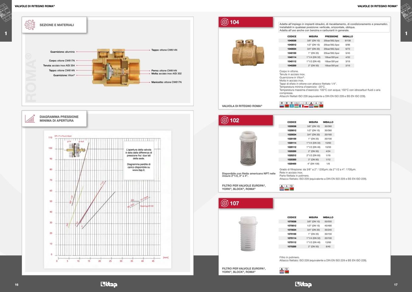Grado di filtrazione: da 3/8” a 2”: 1200μm; da 2”1/2 a 4”: 1700μm.