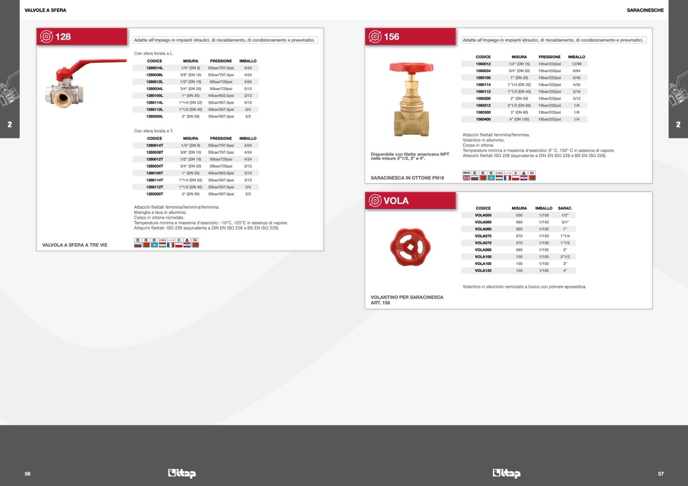 filettati: ISO 228 (equivalente a DIN EN ISO 228 e BS EN ISO 228).