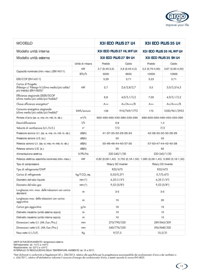 LIMITI DI FUNZIONAMENTO: temperatura esterna