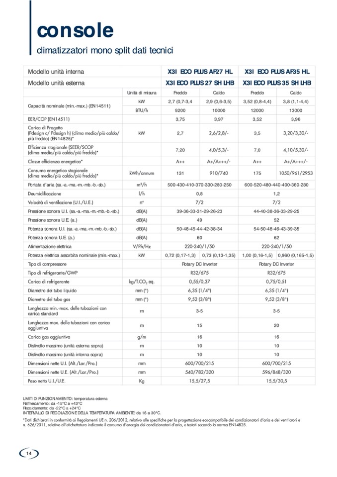 LIMITI DI FUNZIONAMENTO: temperatura esterna