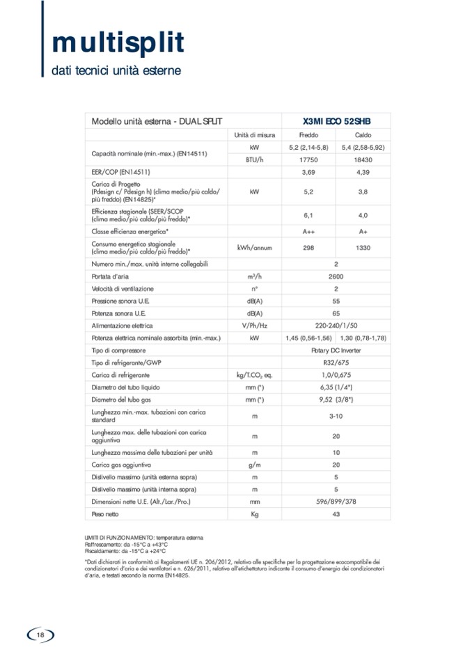LIMITI DI FUNZIONAMENTO: temperatura esterna