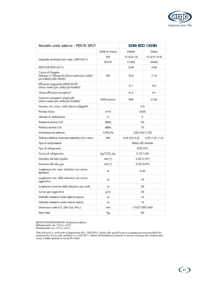 LIMITI DI FUNZIONAMENTO: temperatura esterna