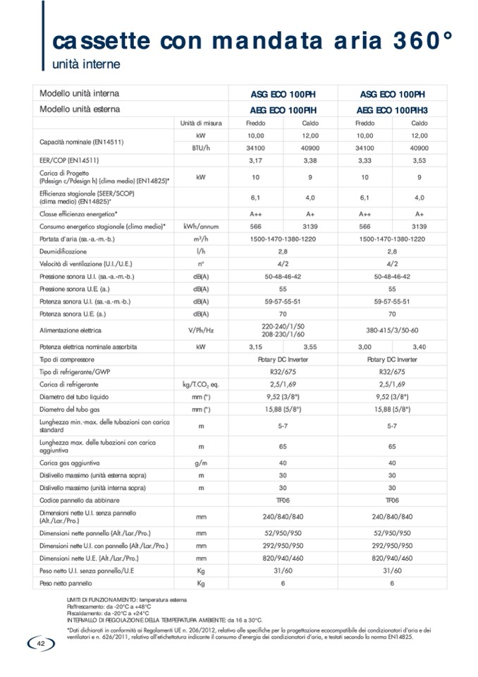 LIMITI DI FUNZIONAMENTO: temperatura esterna