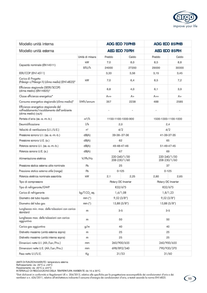 LIMITI DI FUNZIONAMENTO: temperatura esterna