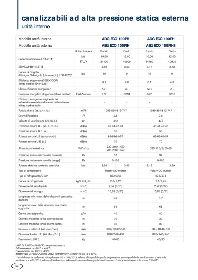 LIMITI DI FUNZIONAMENTO: temperatura esterna