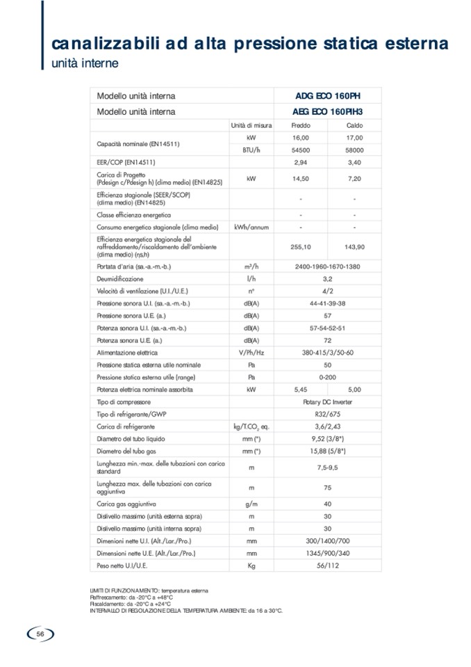 LIMITI DI FUNZIONAMENTO: temperatura esterna