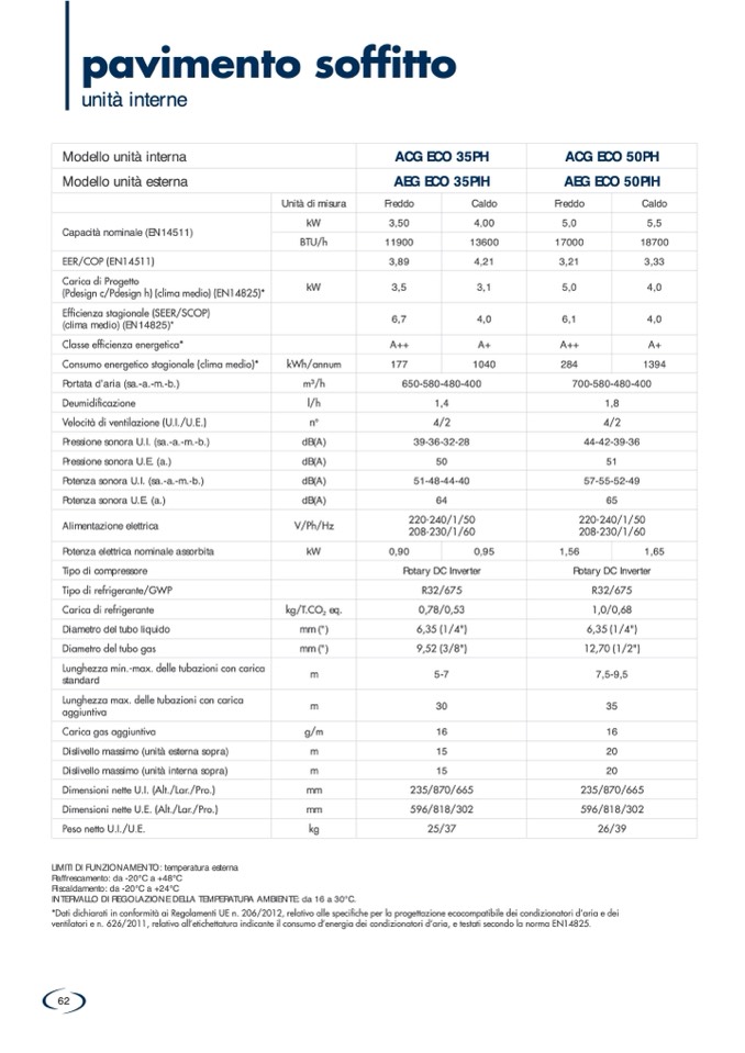 LIMITI DI FUNZIONAMENTO: temperatura esterna