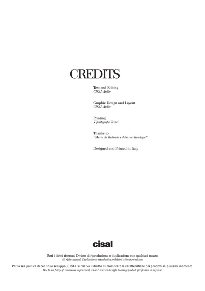 Per la sua politica di continuo sviluppo, CISAL si riserva il diritto di modificare le caratteristiche dei prodotti in qualsiasi momento.
