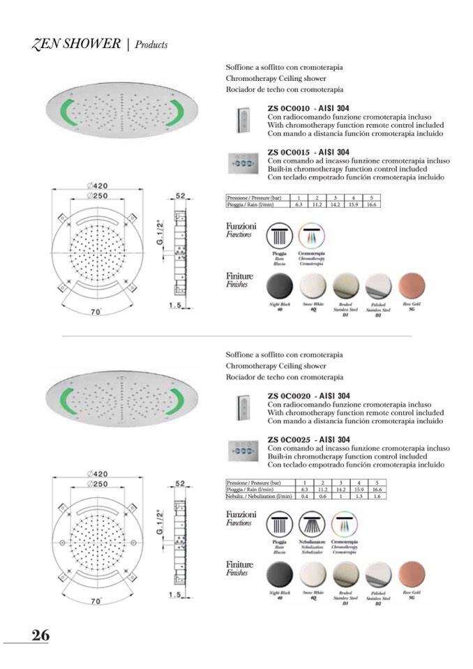 Chromotherapy Ceiling shower