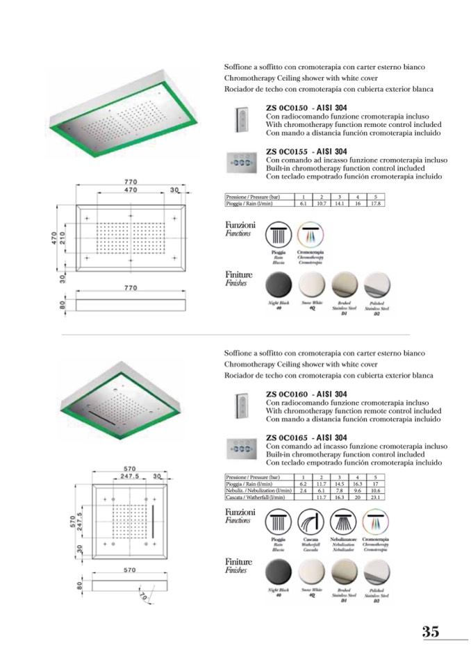 Soffione a soffitto con cromoterapia con carter esterno bianco