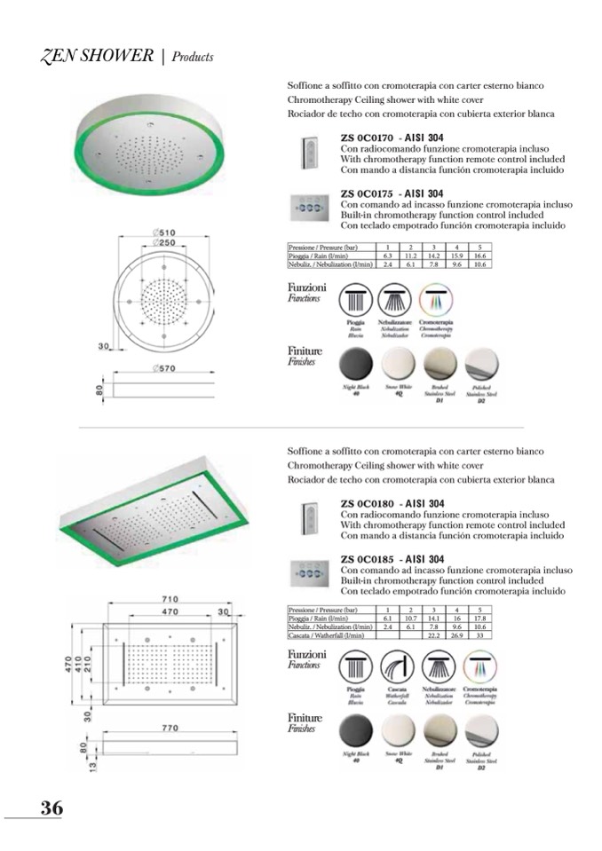 Soffione a soffitto con cromoterapia con carter esterno bianco